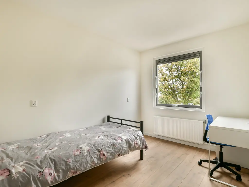 Op de bovenste verdieping vindt u een volwaardige verdiepingsvloer met hoge nok. Aan de zijkant van de woning bevinden zich twee riante slaapkamers. Waarvan de slaapkamer aan de voorzijde ook een mooi uitzicht heeft en beschikt over een extra zijraam. Echt een beauty van een kamer! Deze kamer is voorzien van airco.